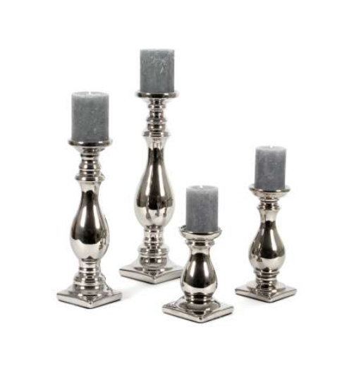 Bringen Sie stilvolles Ambiente in Ihr Zuhause mit dem Keramik-Kerzenleuchter Elena. Der silberfarbene Kerzenhalter überzeugt mit seinem eleganten Design und edler Hochglanz-Oberfläche. Perfekt geeignet für Stumpenkerzen, schafft er eine warme und luxuriöse Atmosphäre im Wohn-, Ess- oder Schlafzimmer.