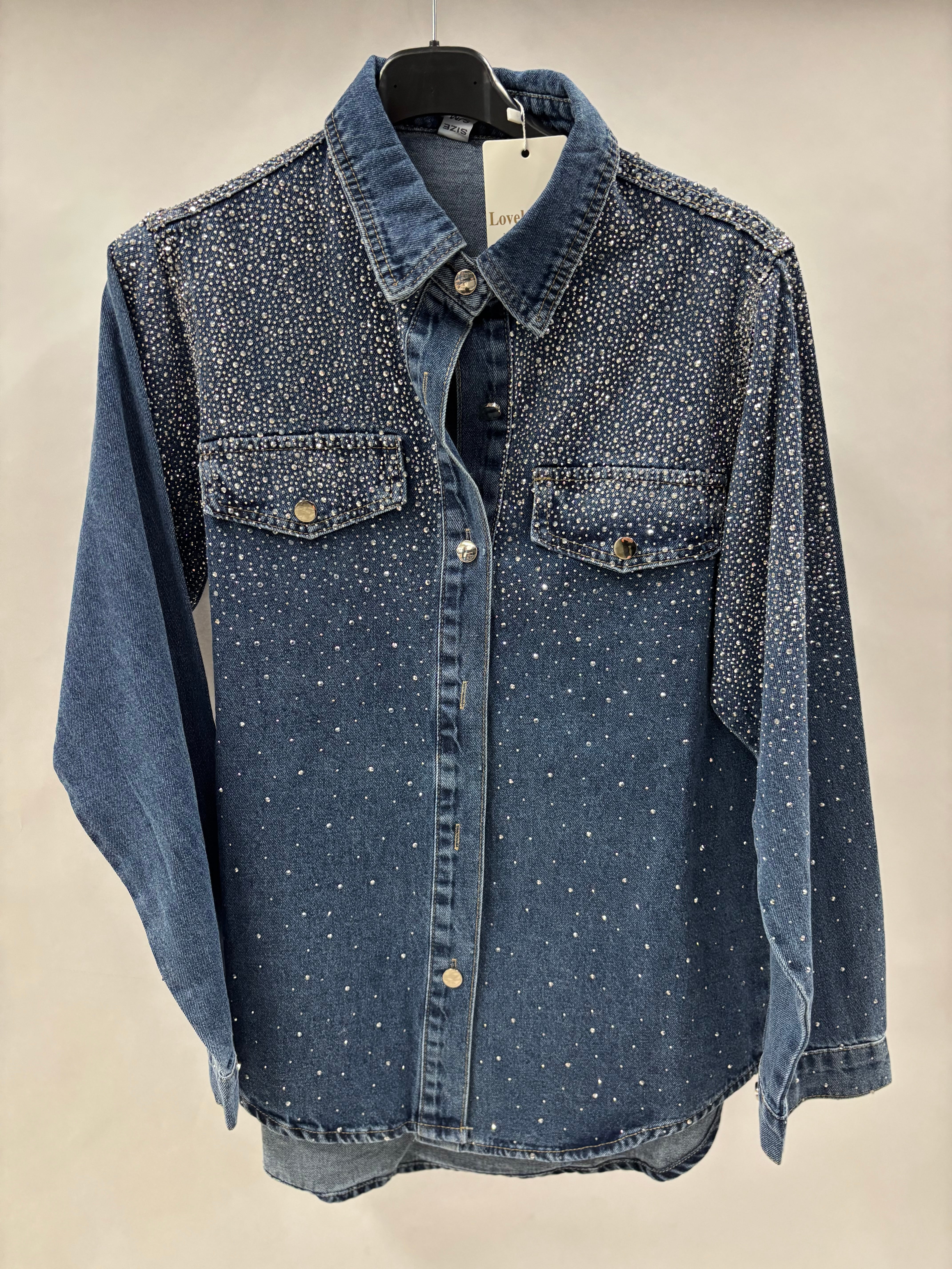 Tilføj et cool og iøjnefaldende touch til din garderobe med denne denim/cowboyjakke med skjortelook og bling. Den lette, skjorteagtige pasform giver et afslappet udtryk, mens de glitrende bling-detaljer tilfører et moderne og glamorøst twist.