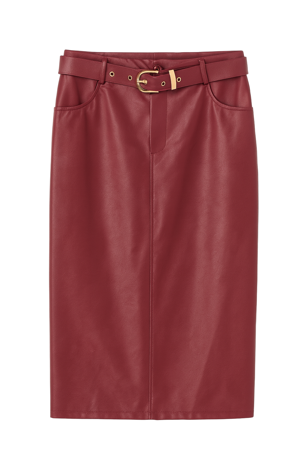 Læderlook Nederdel med Bælte – Passer fra Str. 46-52