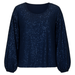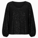De glitrende pailletter giver et eksklusivt udtryk, mens de lange ærmer med elastikafslutning sikrer en flot silhuet og en god bevægelsesfrihed. Blusen er nem at style med både bukser og nederdel, og den kan hurtigt løfte ethvert outfit til noget helt særligt.