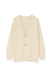 Designet fremhæves af smukke rosenformede guldknapper, som tilføjer et eksklusivt og feminint touch til det klassiske look. Det bløde, strikkede materiale giver et elegant fald, der fuldender din stil.