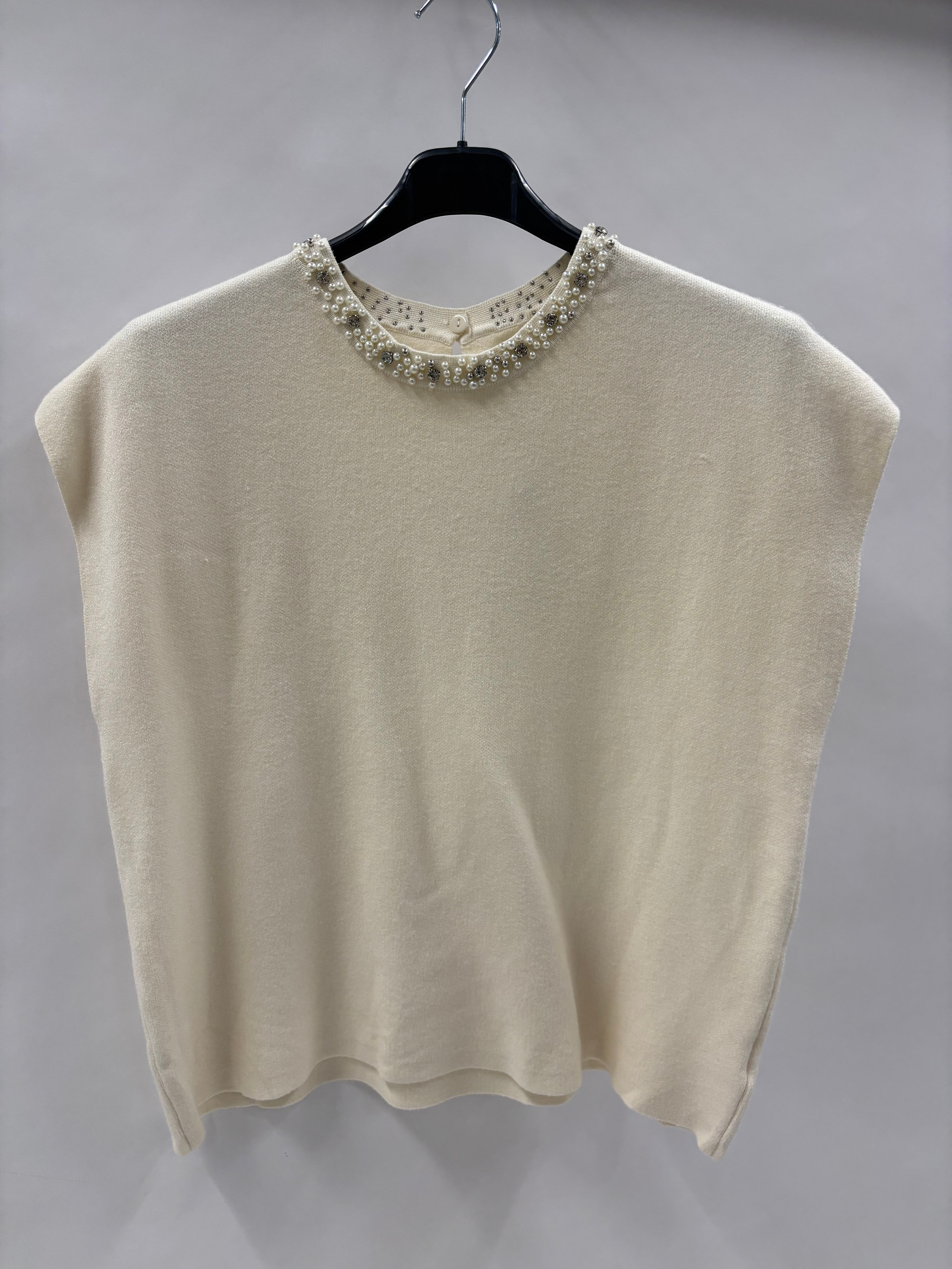 Strikvest med Perlehals – Stilfuld Komfort til Enhver Dag